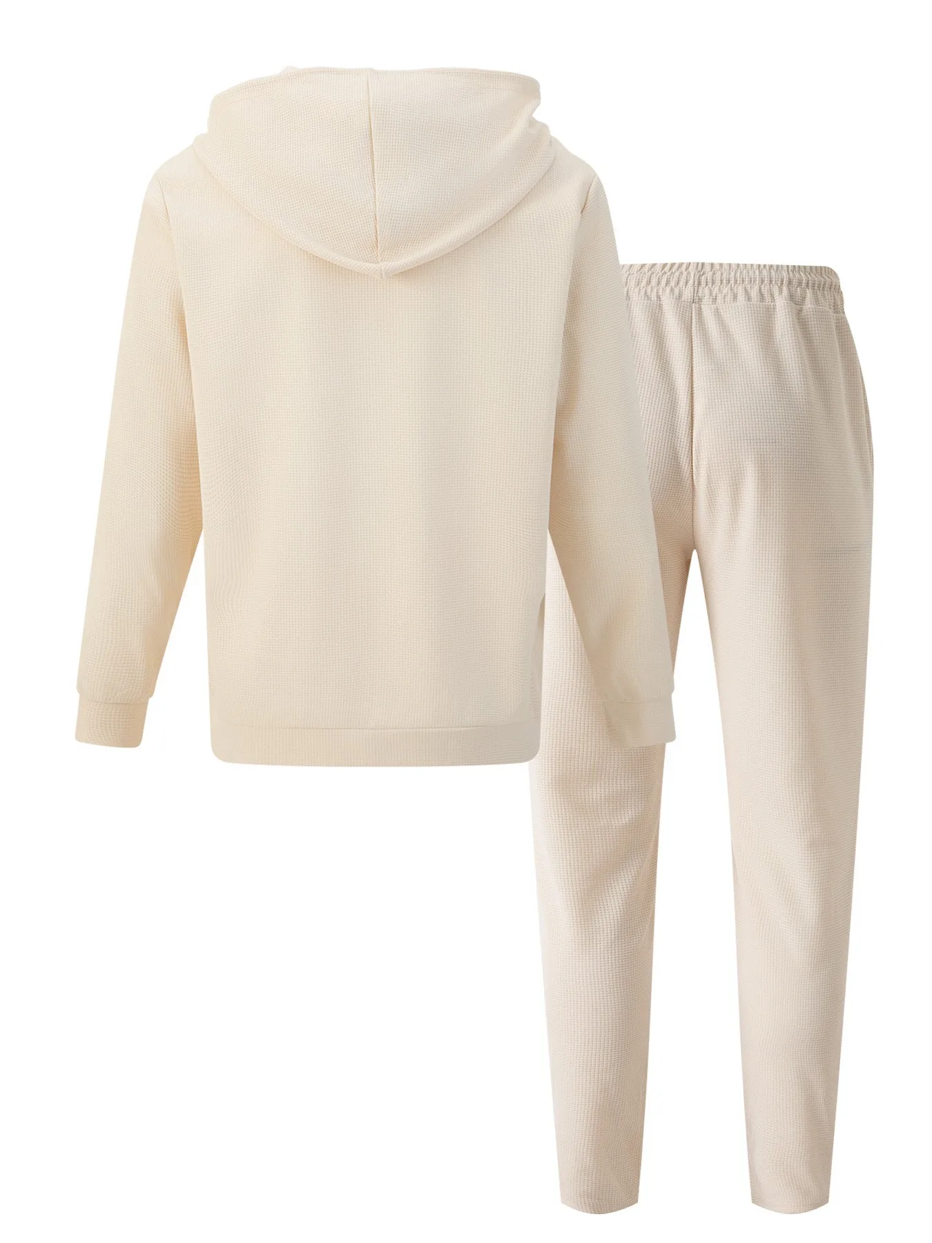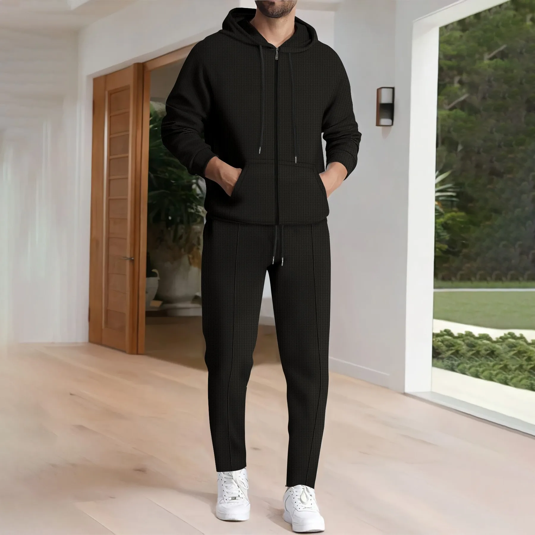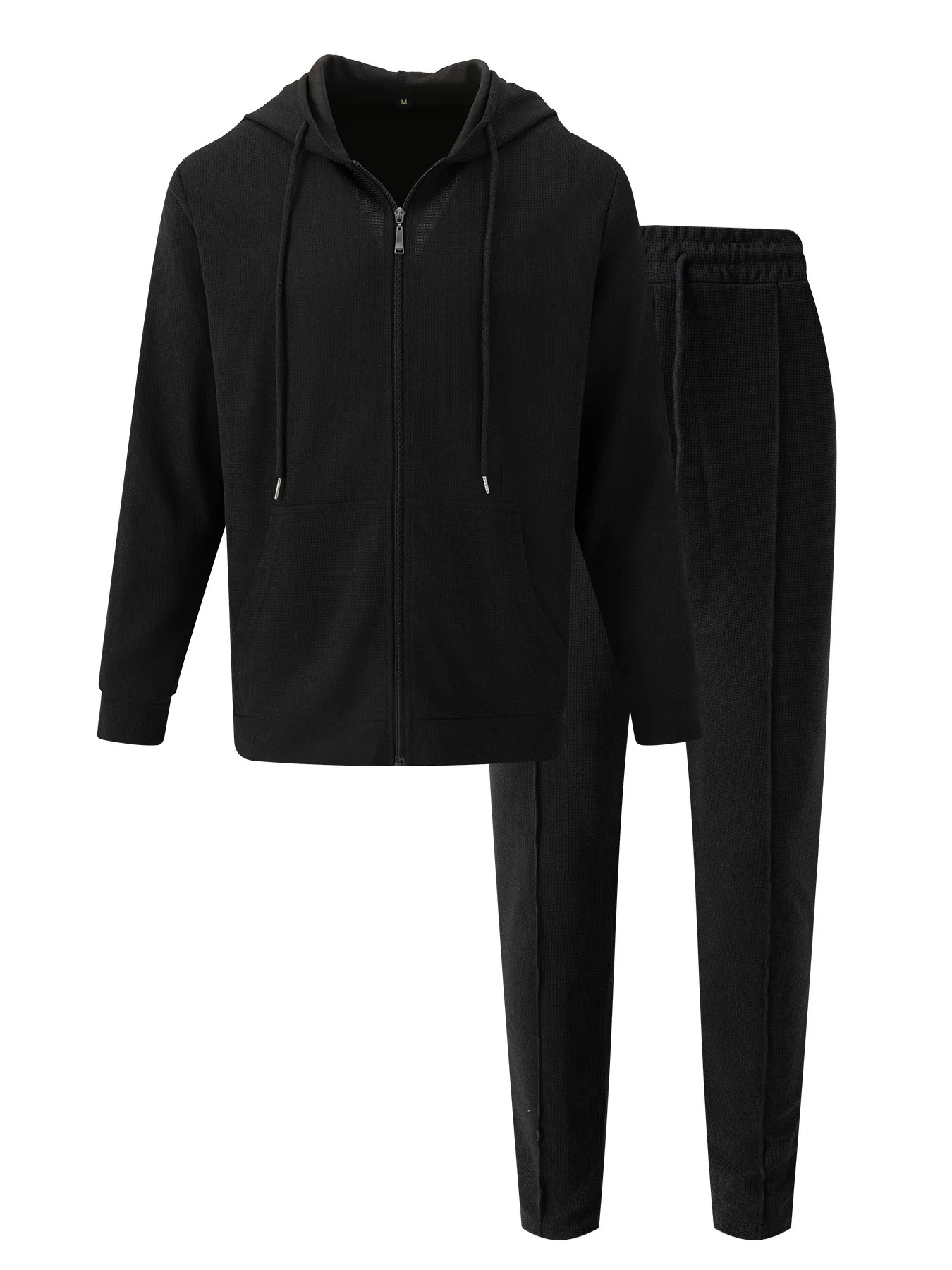 New spring and autumn men's sports casual solid color Waffle green hooded long sleeve hoodie coat two matching pantsuits