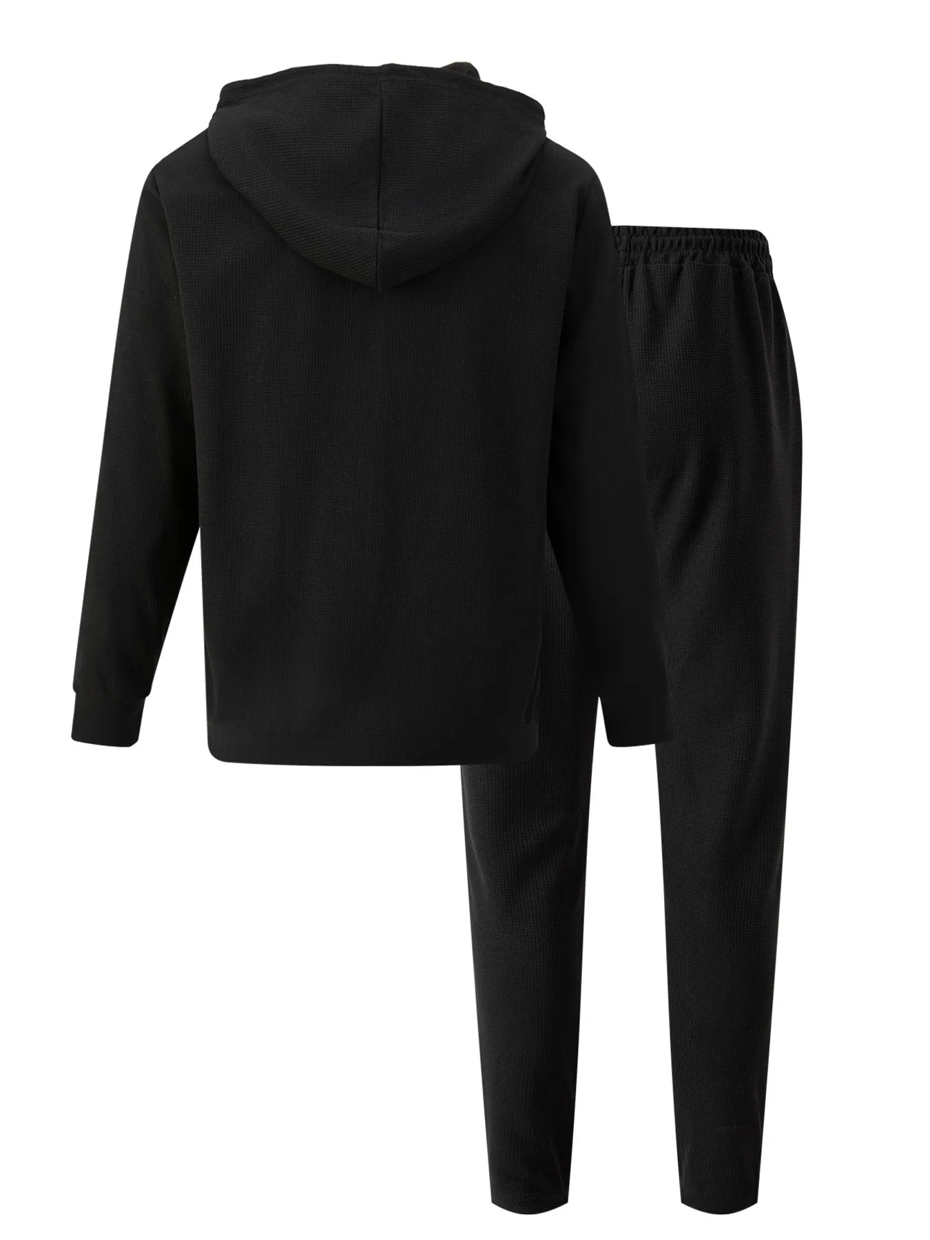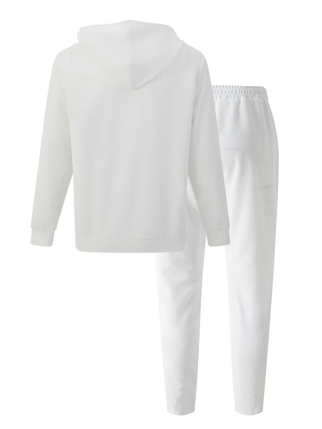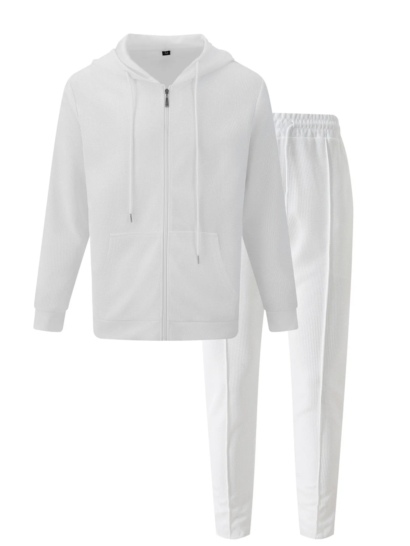 New spring and autumn men's sports casual solid color Waffle green hooded long sleeve hoodie coat two matching pantsuits